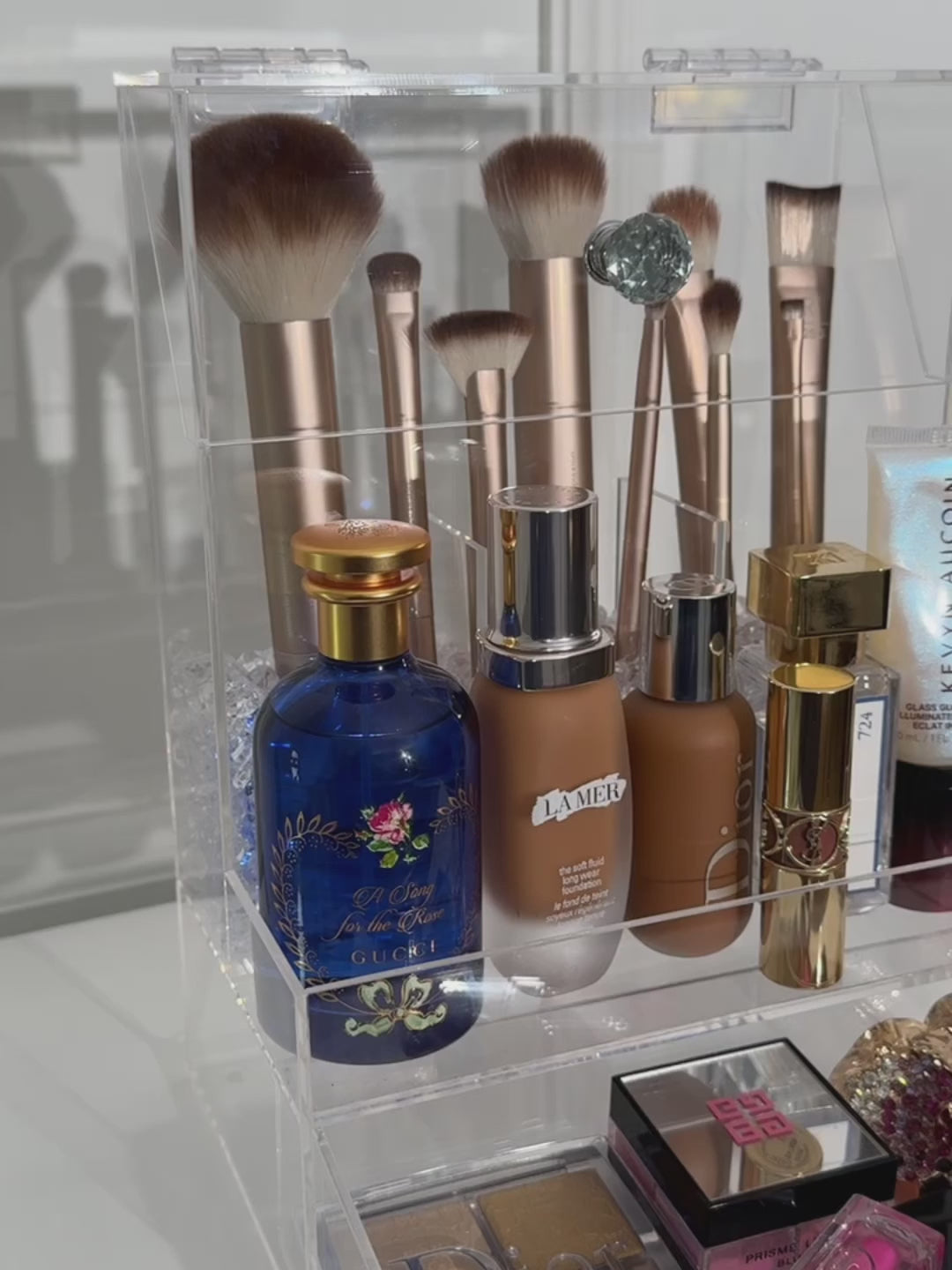 The Make-up Base organizer är ett snyggt och funktionellt sätt att visa upp alla dina vardagliga essentials. Från foundation till cream blush och till och med dina sminkborstar, den här organisatören har plats för att visa upp allt. Den högkvalitativa akryldesignen gör att du kan se dina favoritartiklar med en blick. Med sin halkfria botten säkerställer den stabilitet vid användning.